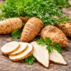 The tubers can be harvested as soon as the foliage of the plant begins to turn in colour. After harvesting, allow these tubers to season in a cool place in moist sand for 6 - 8 weeks. The tubers can also be left in the ground a little longer (until December) and then harvested and prepared fresh.